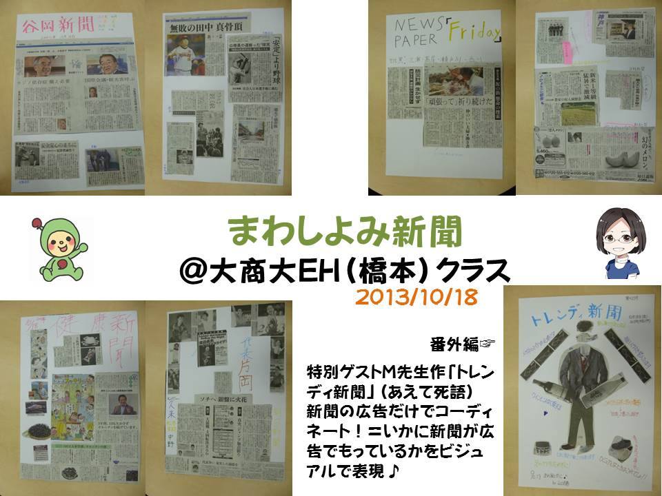 大阪商業大学で橋本信子特別講師が「まわしよみ新聞」を実施してくれました!ありがとうございます~!m(_ _)m 以下は橋本さんの御報告から。「トレンディ新聞」がナウイ(死語)ですなww