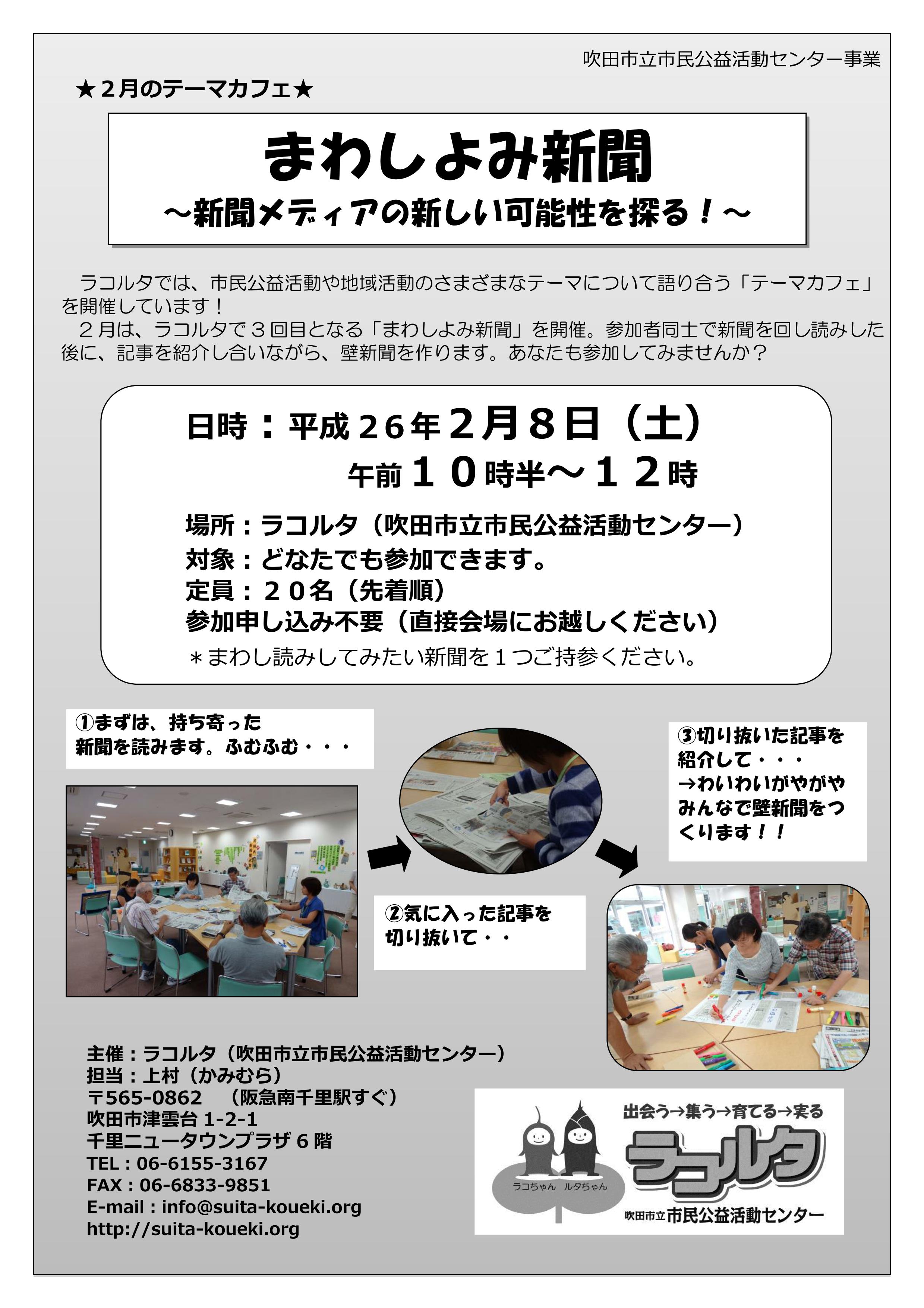 ■2/8(土)10時半よりラコルタ(吹田市立市民公益活動センター)にて「まわしよみ新聞」実施!