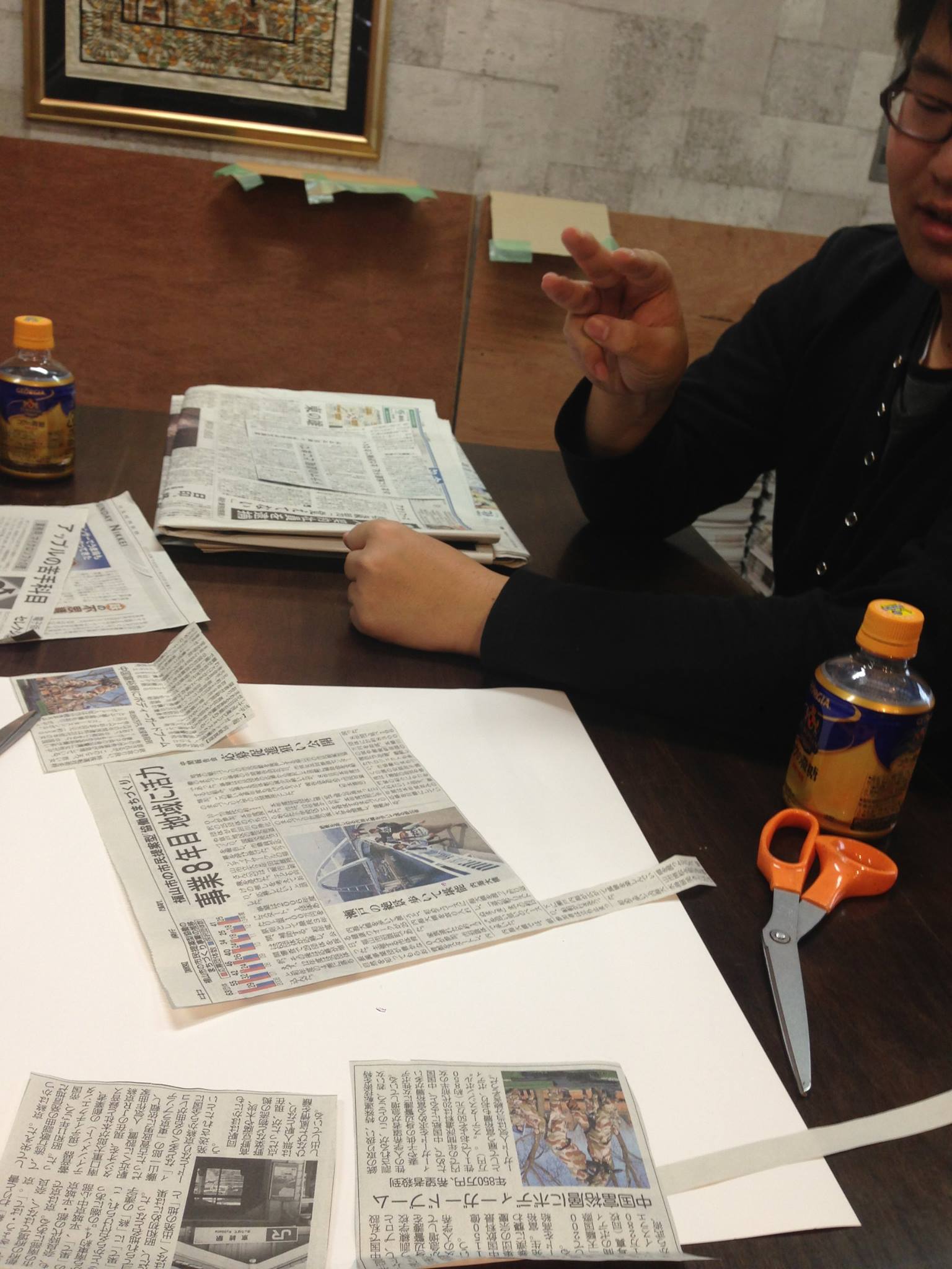 先日、広島大学の学生さん2名と「まわしよみ新聞」をしました。まわしよみ新聞とは・・・