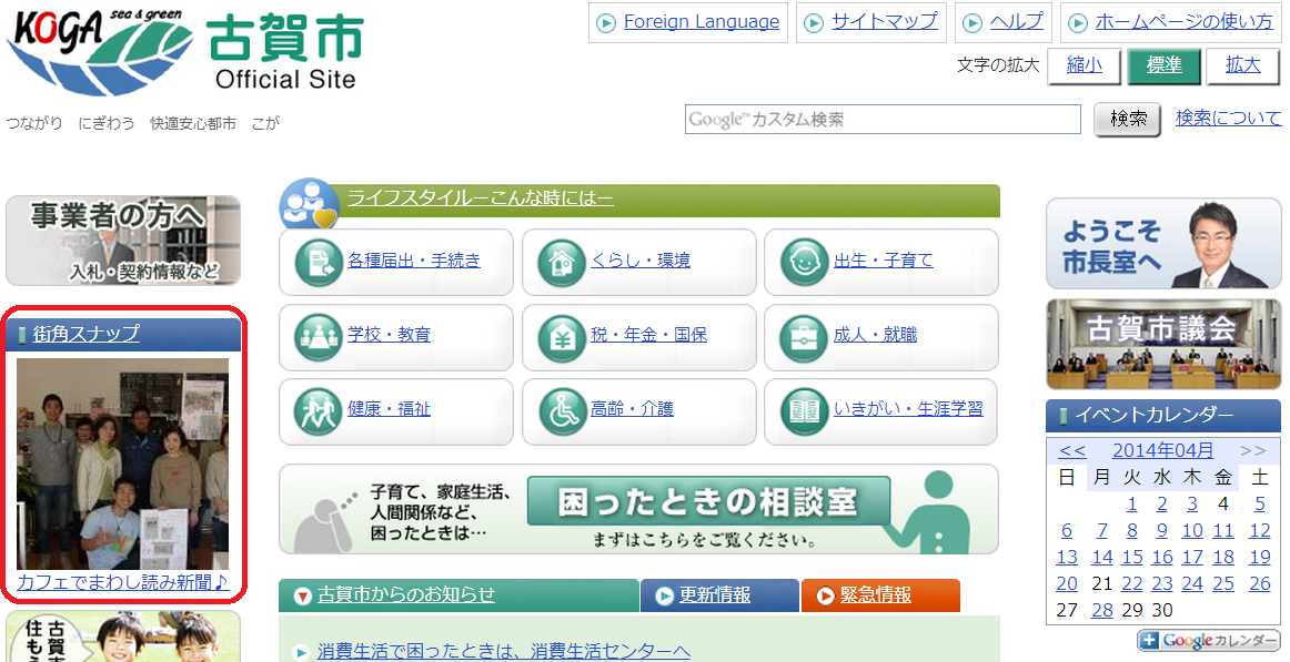 ■古賀すたいる「市役所のホームページに古賀すたいるイベント『まわしよみ新聞』がのっている。」