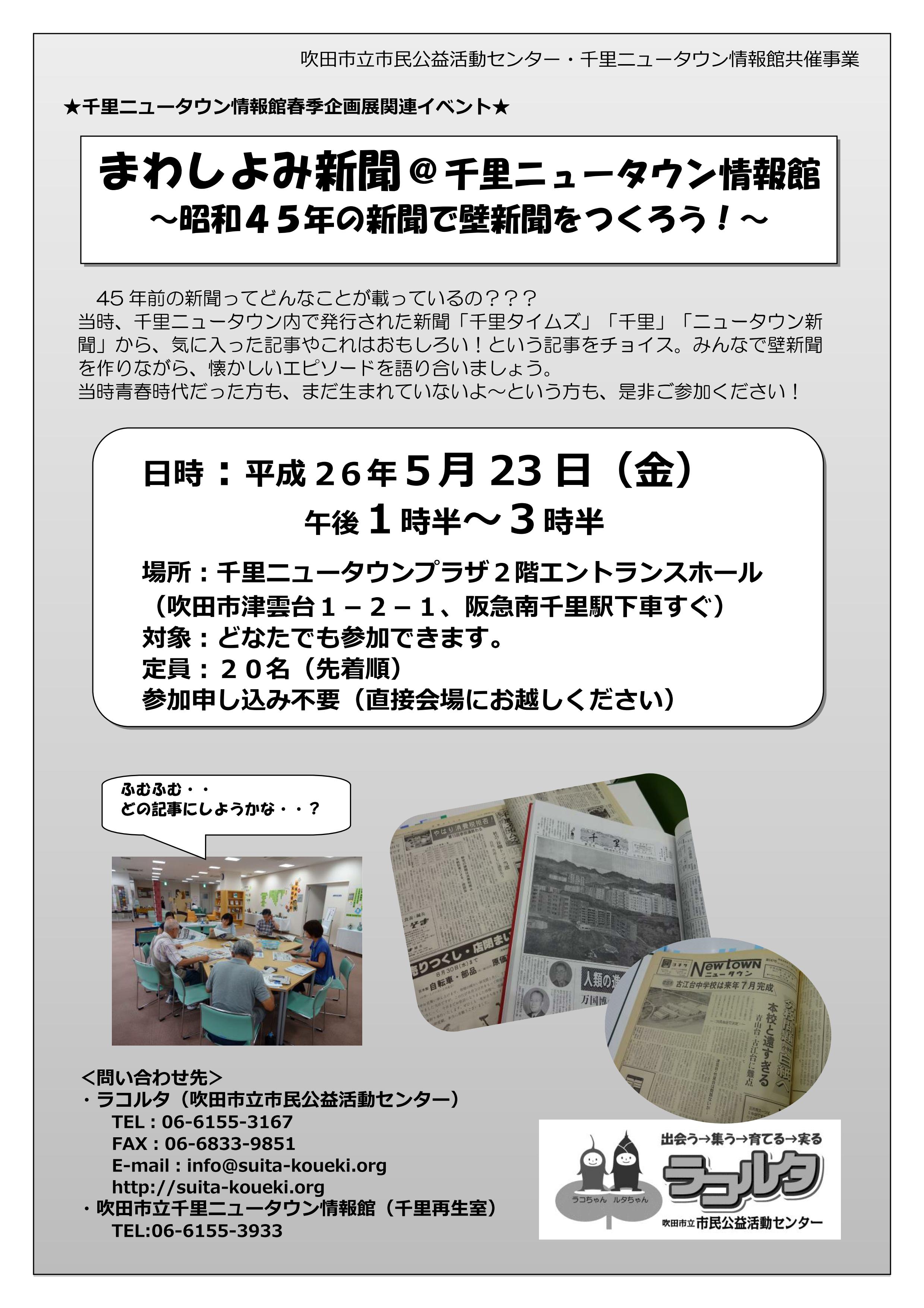 これは、でも、ぼくの方からの企画立案だったので「誰かこういうことやらへんかなぁ~?」と思っていたら、ついに吹田市のラコルタさんと千里ニュータウン情報館さんがやってくれましたw