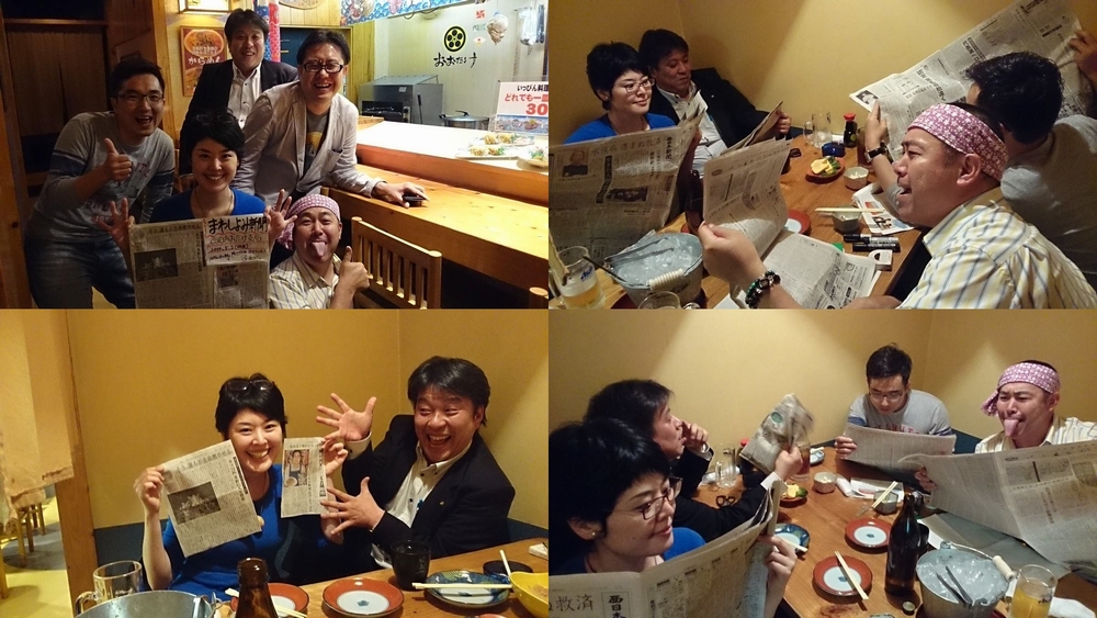 なんと居酒屋でまわしよみ新聞!!新聞をまわし、酒をまわし、場をまわす!これは大ヒットの予感ww