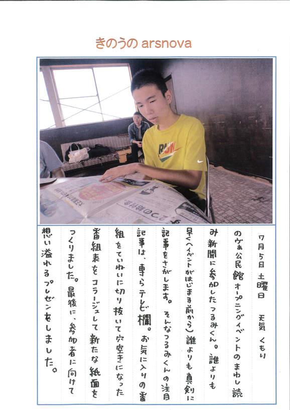 ■障害福祉サービス事業所アルス・ノヴァ「7月5日(土) まわしよみ新聞」