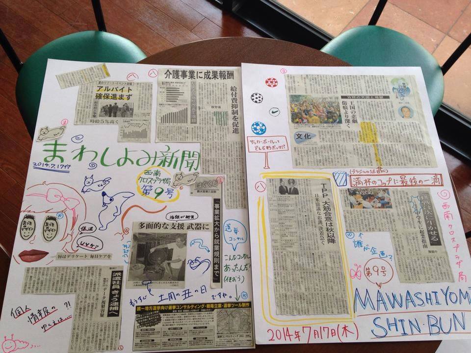 「まわしよみ新聞@西南学院大学クロスプラザ編集局」の桑野さんの記事より!^^遊び心あふれるまわしよみ新聞。いまの若い人の「編集力」ってほんま侮れません。西南学院大学にいきたいなぁとか思う今日この頃ですw